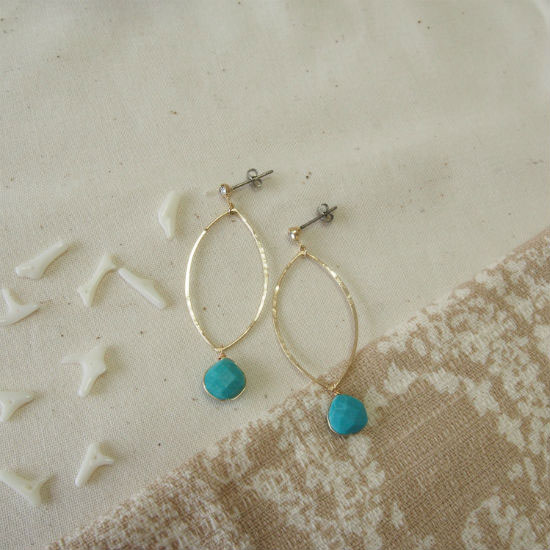 This pair of stylish earrings comes with a fashionable and modern design. The earrings are crafted with two blue stones for an eye-catching look. This pair of colored stone earrings is easy to mix and match with your outfits.