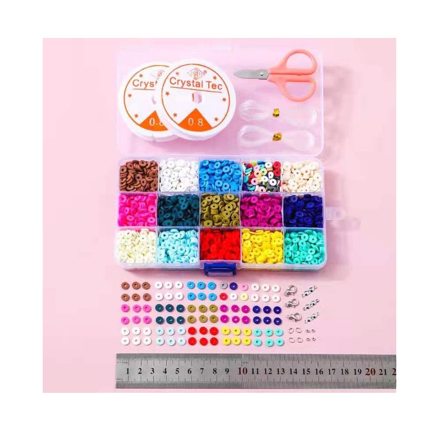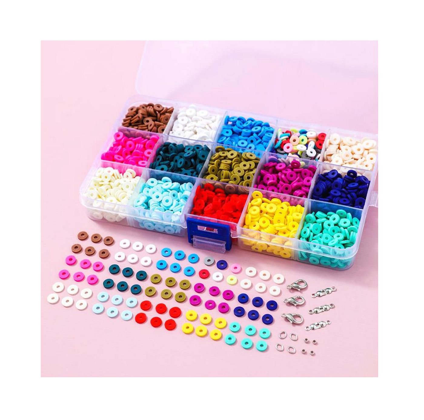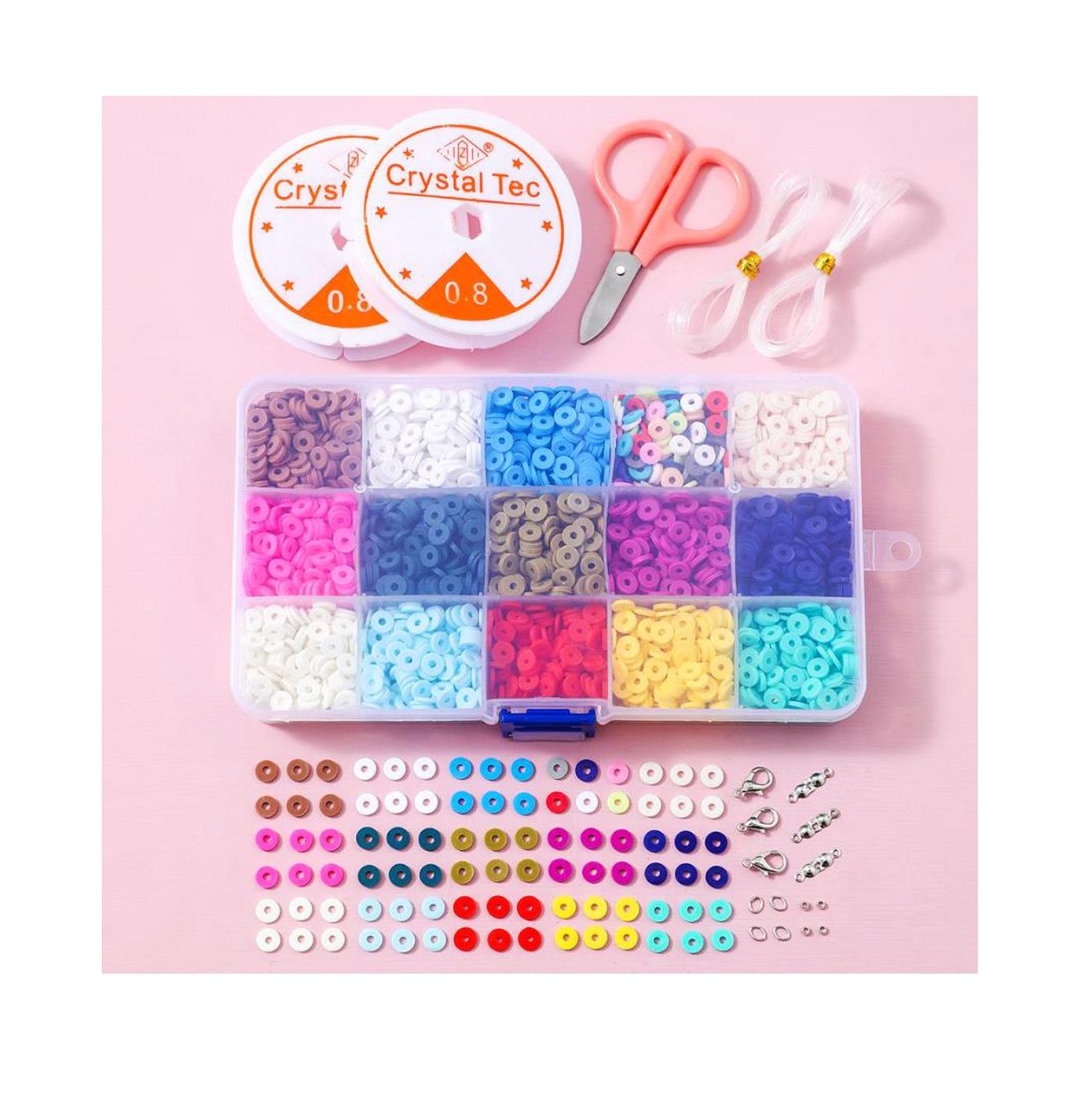 As shown is a colorful DIY flat clay beads for bracelets jewelry making with string for kits gift.