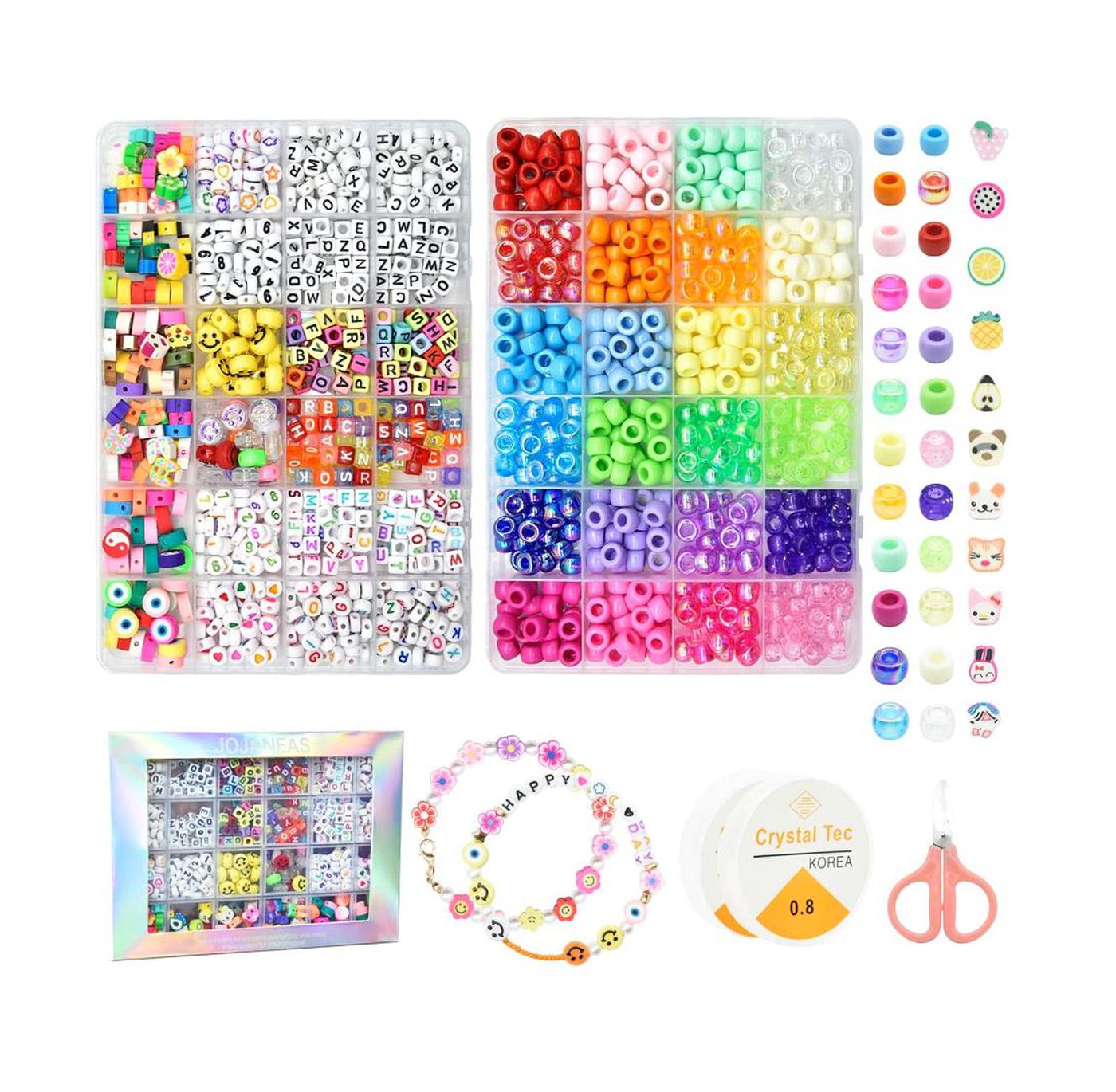 As shown is a colorful DIY flat plastic beads for bracelets jewelry making with string for kits gift.