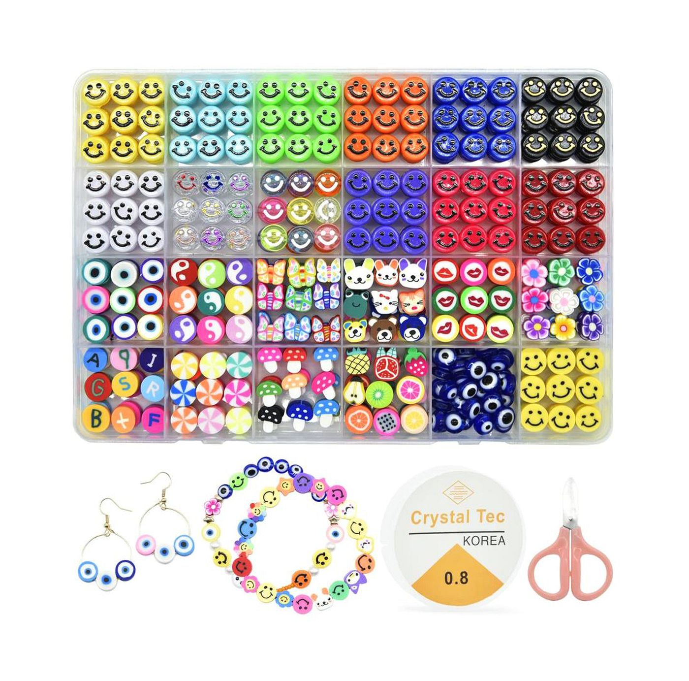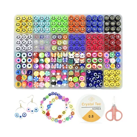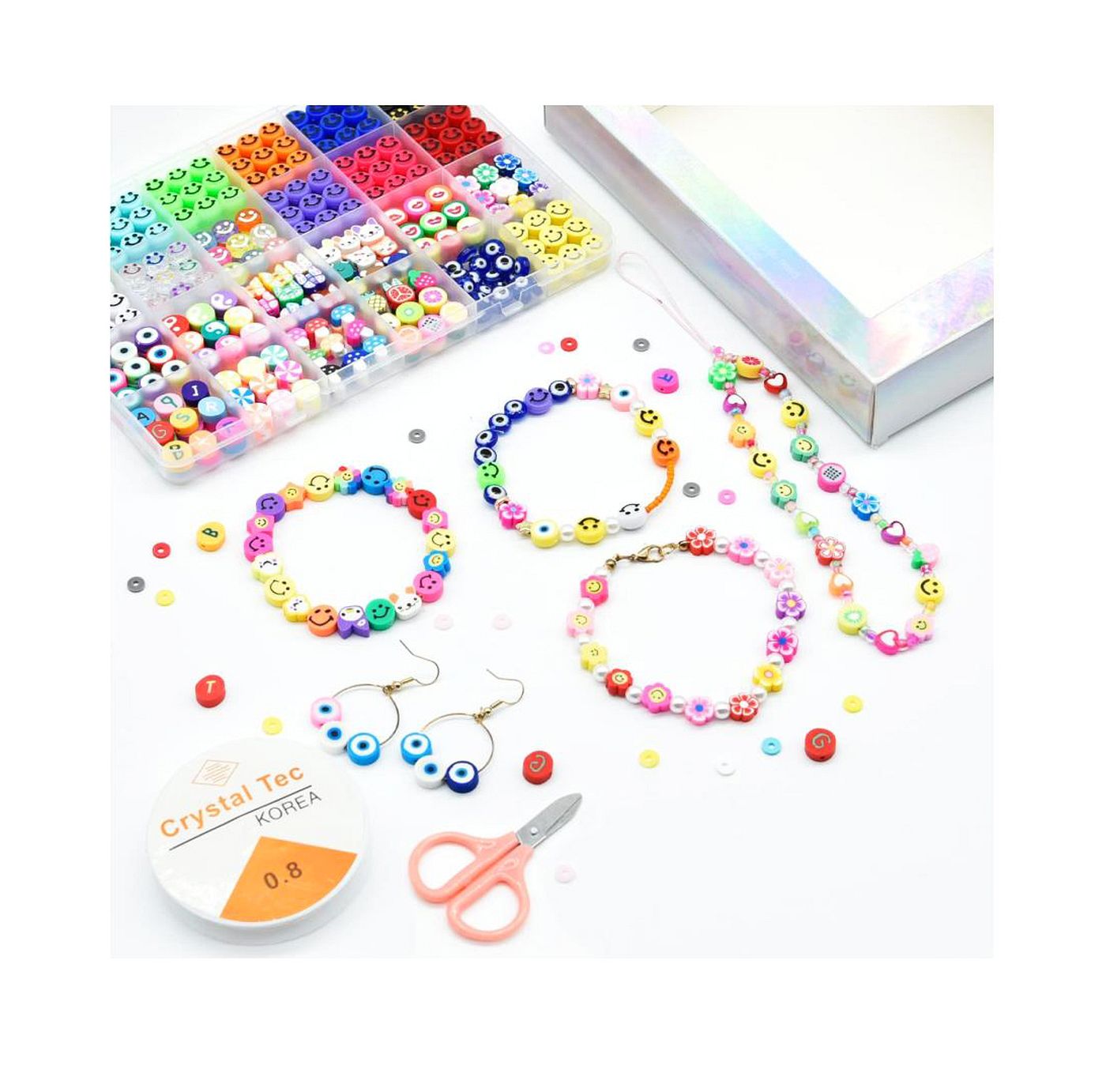 As shown is a colorful DIY flat plastic beads for bracelets jewelry making with string for kits gift.