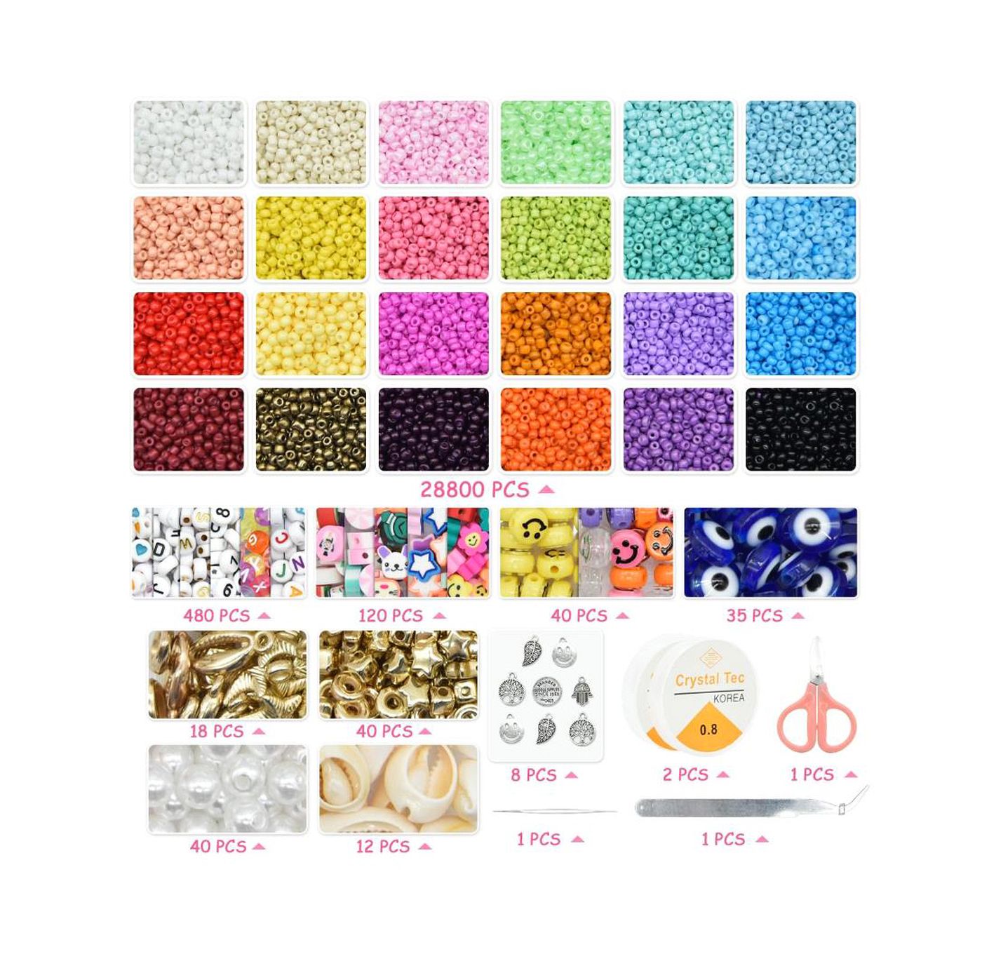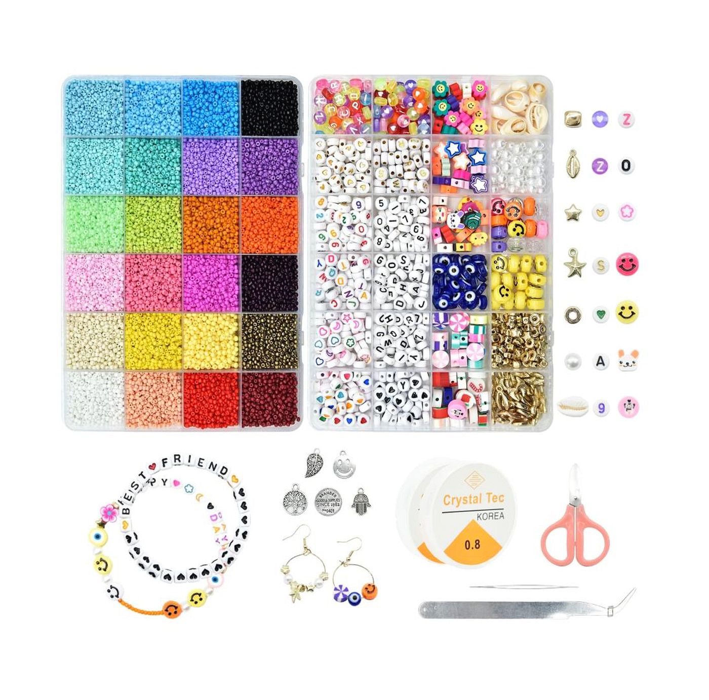 As shown is a colorful DIY flat plastic beads for bracelets jewelry making with string for kits gift.