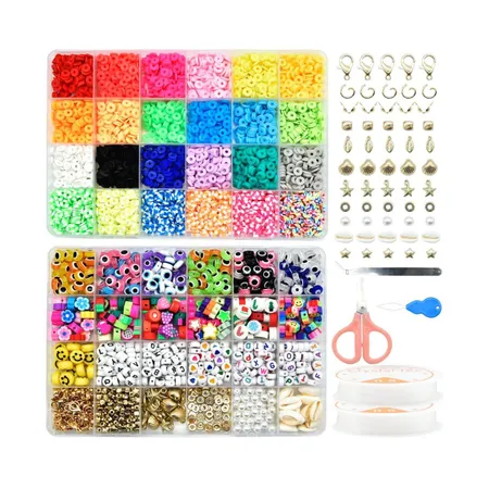 As shown is a colorful DIY flat plastic beads for bracelets jewelry making with string for kits gift.
