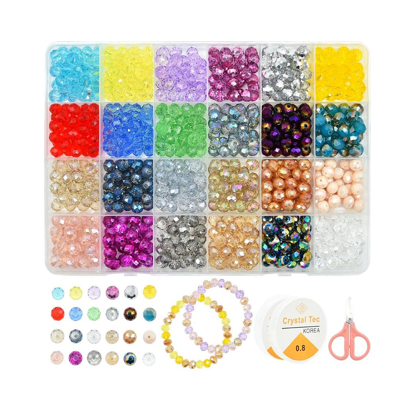 As shown is a colorful DIY flat plastic beads for bracelets jewelry making with string for kits gift.