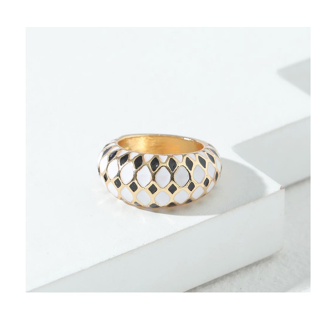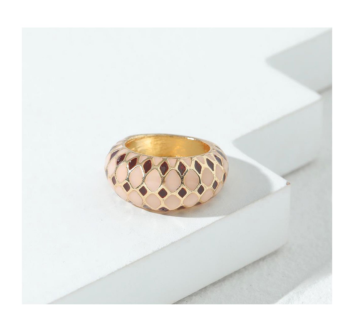 As shown is a high-fashion colorful epoxy style ring with alloy metal materials.