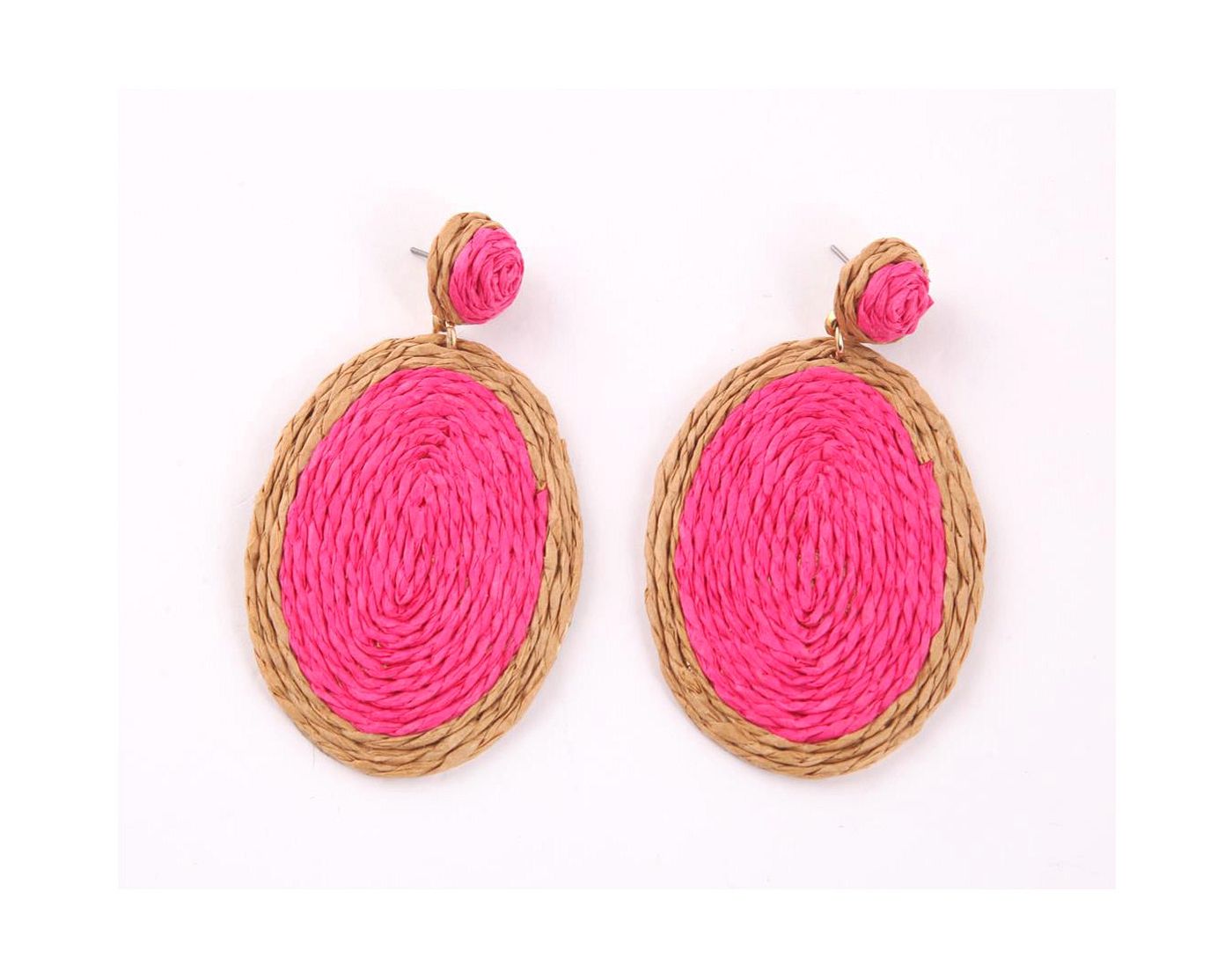 As shown is a high-fashion oval style weaved pattern jewelry drop earring.