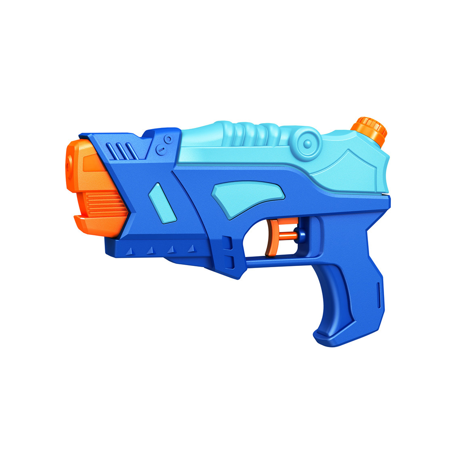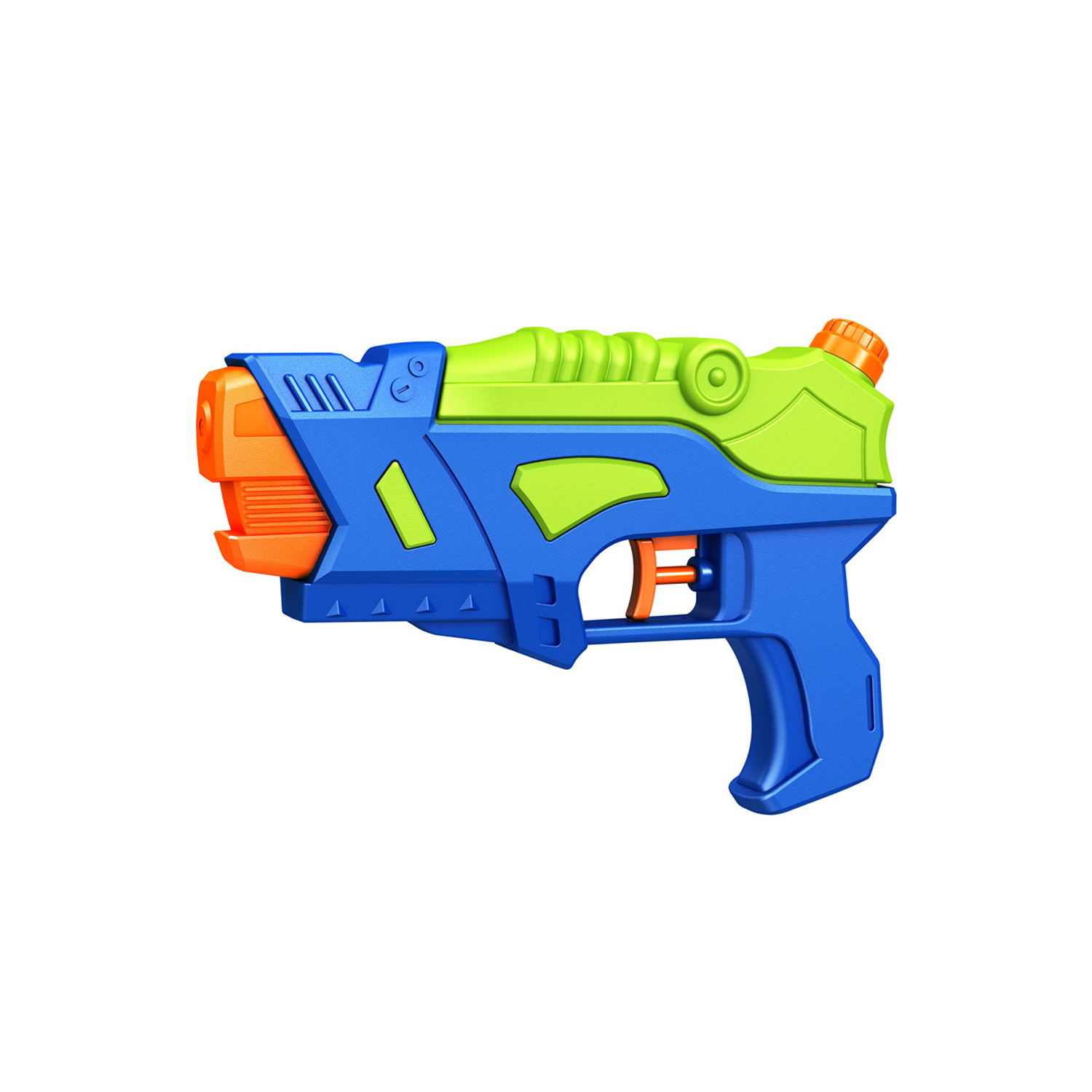 Load the pistol with water, take aim, and force the handle forward to blast water at your opponent or target.