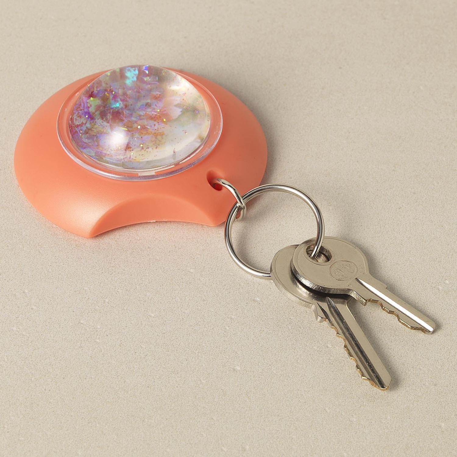 UFO shaped glitter frame keychain that is perfect for displaying your favorite photo, filled with water and shimmering glitter inside. Use it to organize your keys or as a decoration for your bag.