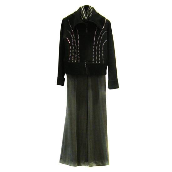 This featured item is a set of women chic wear that is much comfortable and modish. The most significant feature is that is made of boiled wool with heat set glen plaid stretch pant. Besides, curve pattern on the jacket helps to bring out women nature body shape by smooth trimming along the waist.