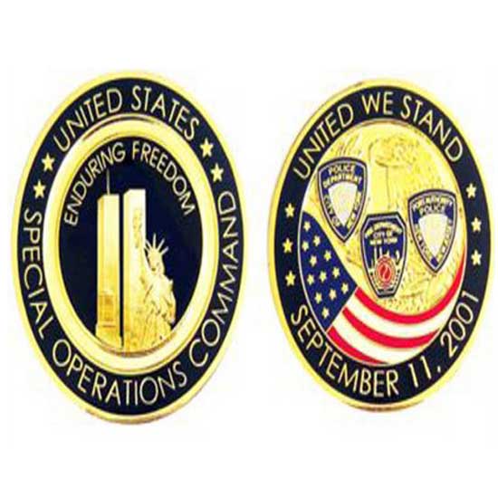 The coin is designed to commemorative the 911 attack in USA. It is delicately crafted to give a polished and detailed finish. Customized logos can be imprinted on this coin to suit various promotional needs.