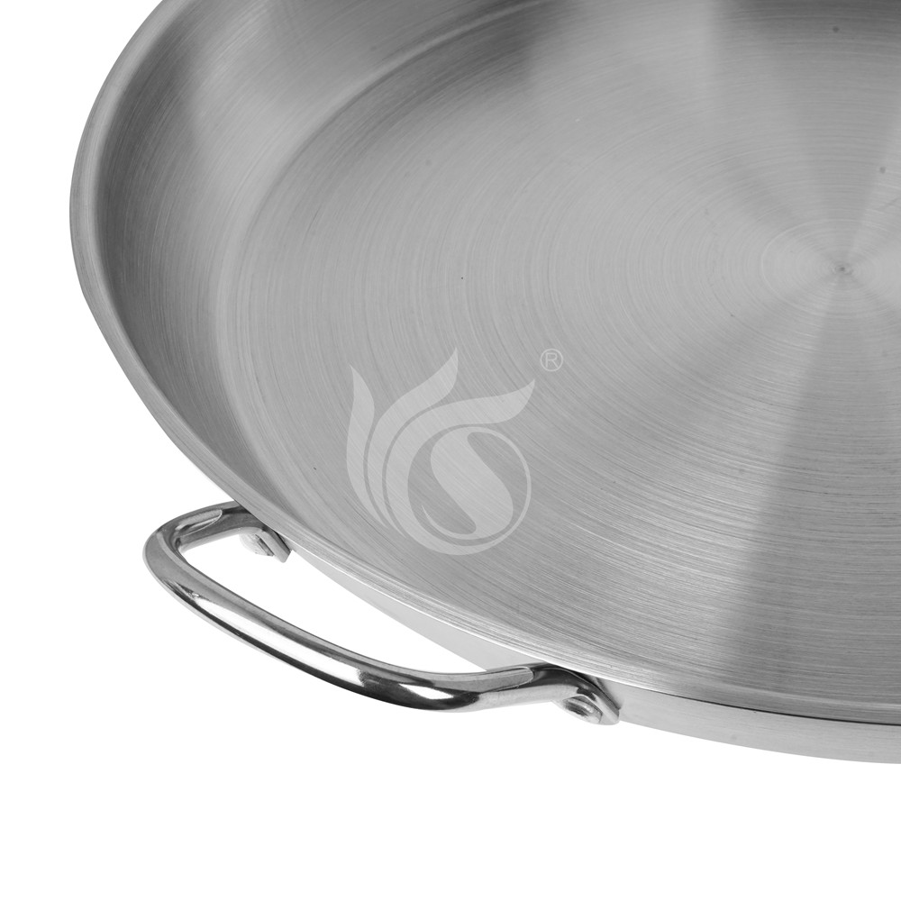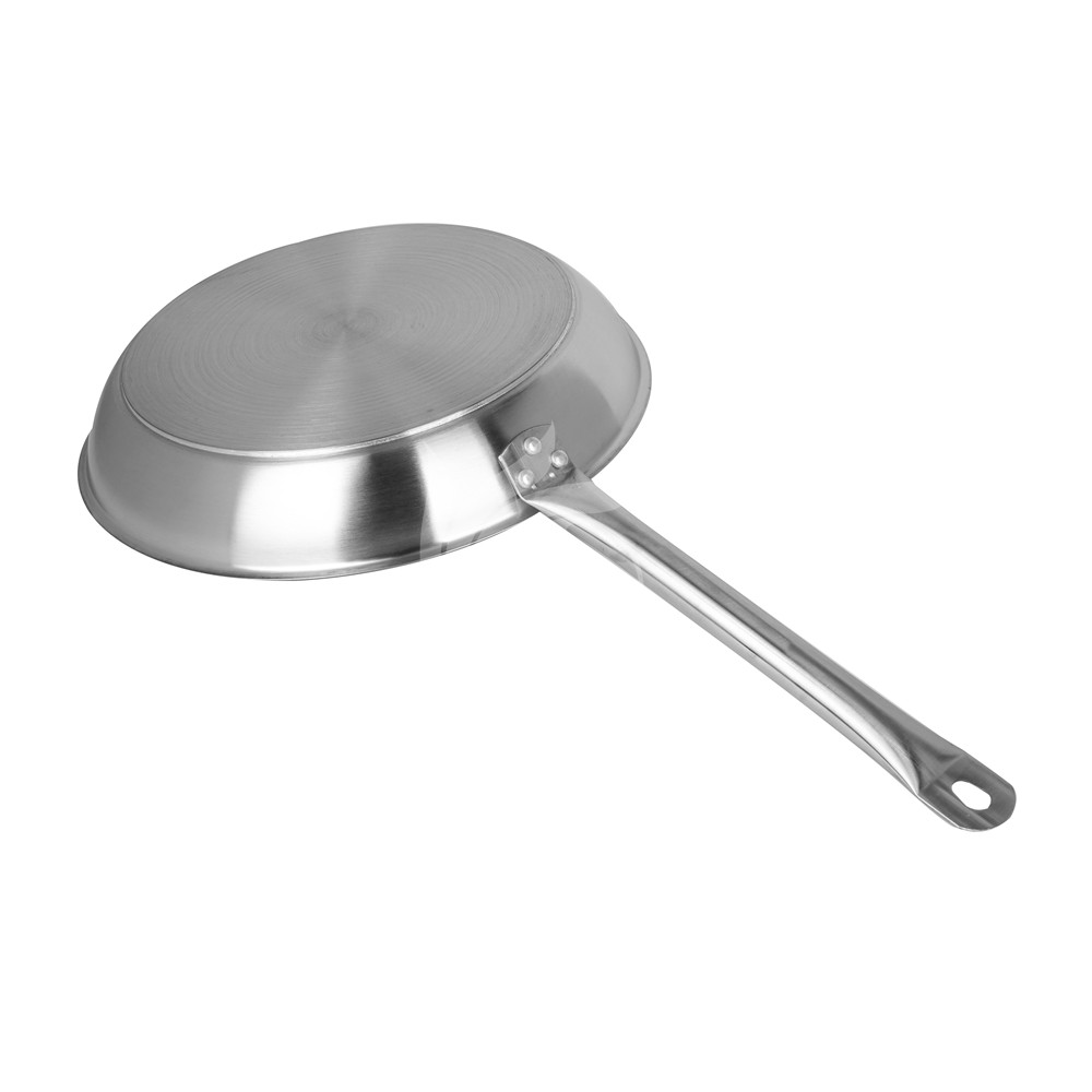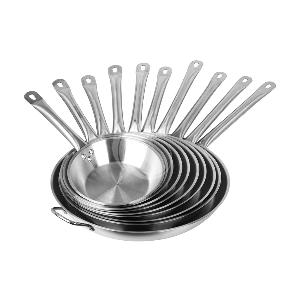 Commercial 20-40cm Diameter Stainless Steel Fry Pan, Induction Compatible, Triple Layer Base for Even Heating