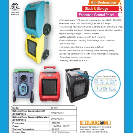 Removes 65 liters up to 80 liters of moisture per day (30℃, 80%RH)