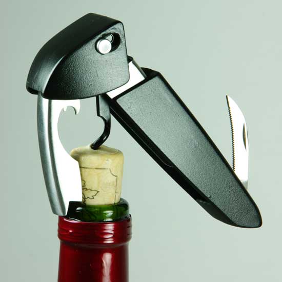 The presented compact corkscrew uses a pull-and-remove mechanism for ease of use. The handle comes with a foldable knife to remove the foil on wine bottles. This compact corkscrew makes a must-have for professional bartenders.