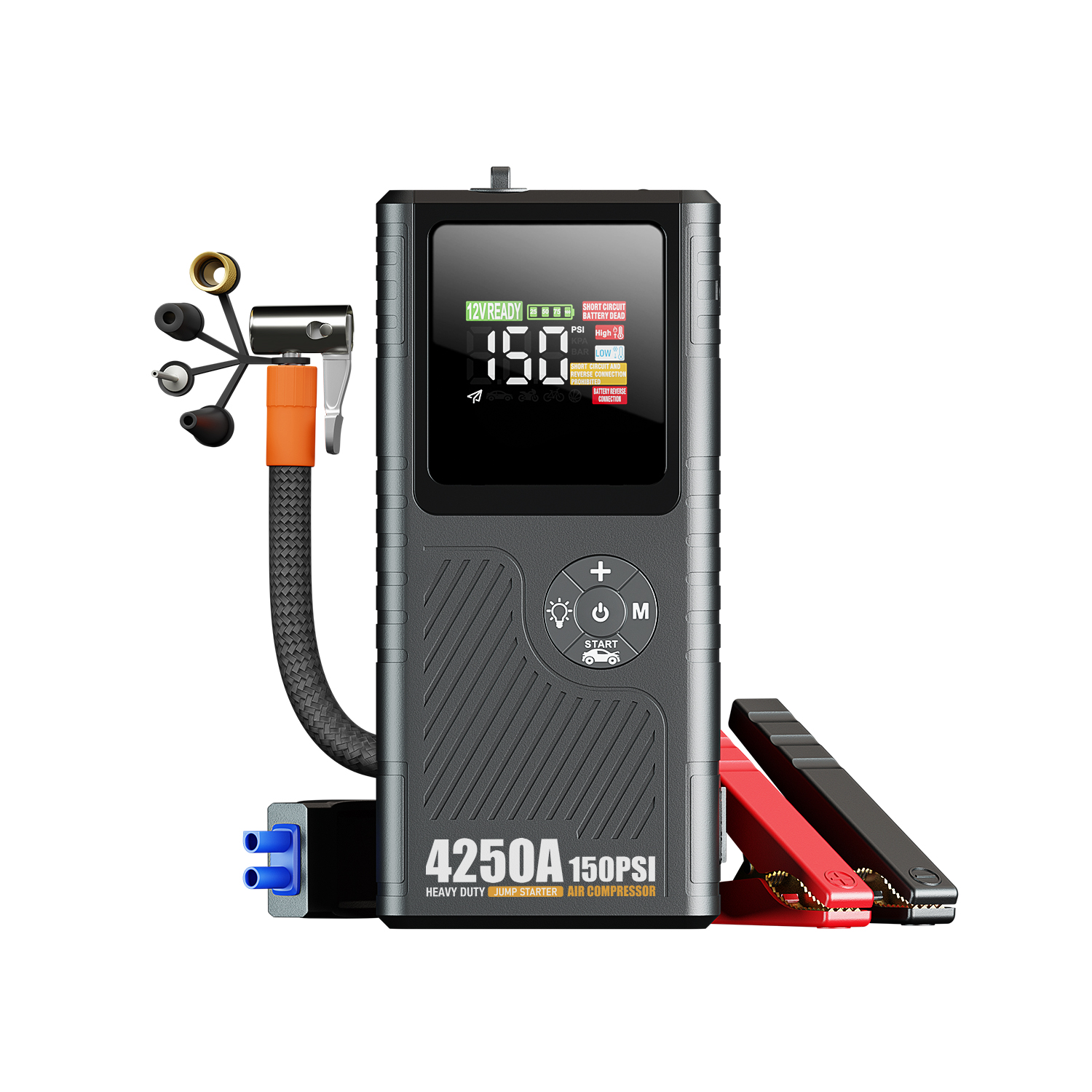 1. Multifunctionality: Serves as a potent jump starter for diverse vehicles (up to 7L Gas engines) and a rapid air pump for tires (up to 150 psi), balls, etc.