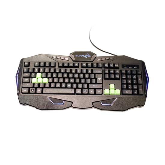 This keyboard in black is designed with light-up curving edges for a chic touch. Some buttons come in green to ensure easy identification for game players. This smart and durable keyboard can sustain long time service.