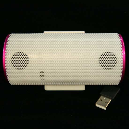 This computer speaker comes with a stylish housing in white and pink. The honeycomb-design mesh plate makes a decorative element. The glossy sides exhibit extra uniqueness.