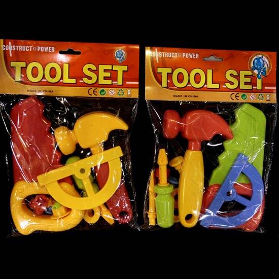 This is a set of plastic construction tools including a hammer, a screwdriver, a nail, etc. This construction tool set is well packaged in a polybag. Children will love using the hammer and screwdriver to finish their little projects.