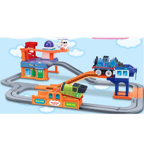 Shown here is a construction train set with a fun and adorable cartoon theme that is appealing to children. The toy trains will run automatically after you switched on the power. This fun construction train set is a great gift for young children.