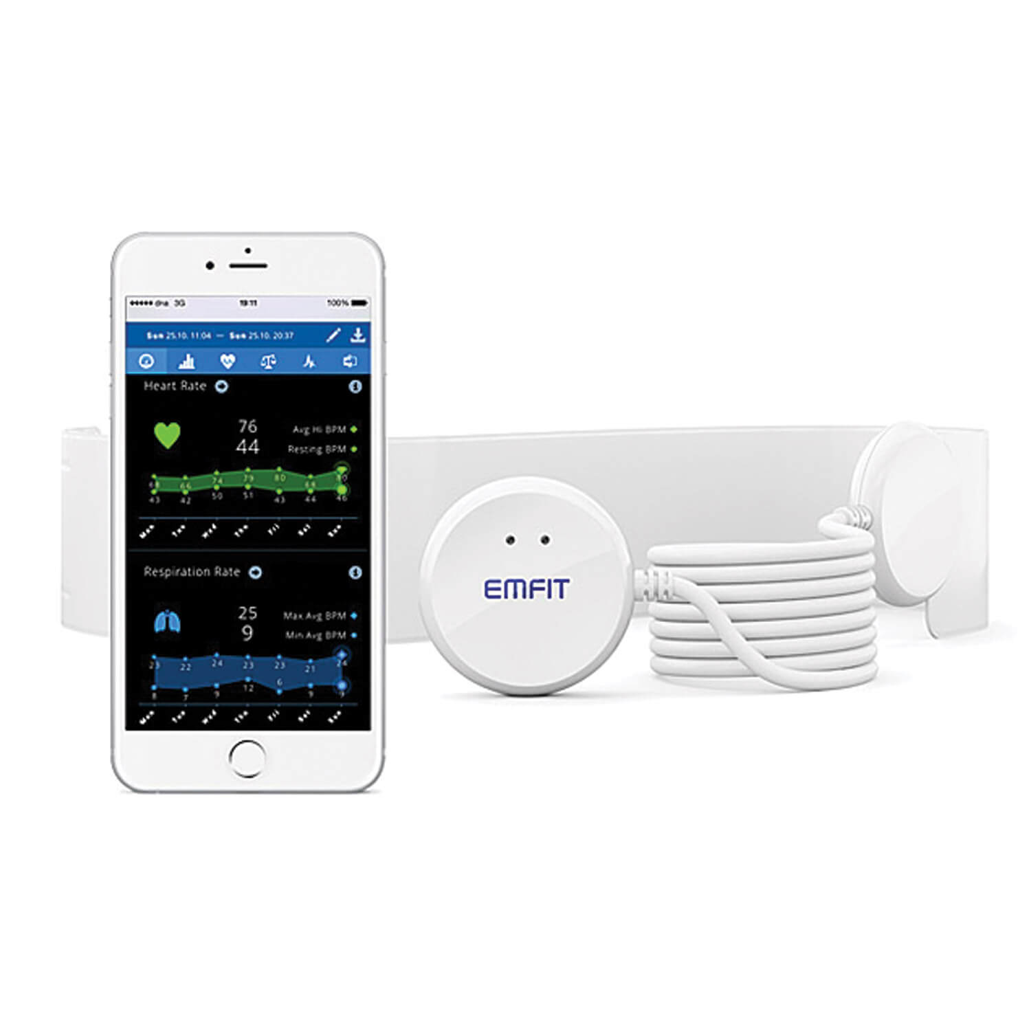 Emfit QS consists of a thin, film-like sensor and a small control unit. The Emfit QS thin sensor is put under the mattress which is contact free and people can sleep usual. The sensor can detect people's vitals during sleeping. * The data includes heart rate variability, recovery, stress level, sleep stage classification, heart rate, respiratory rate, overall sleep score, movement activity and so forth, which can be viewed by a web application.