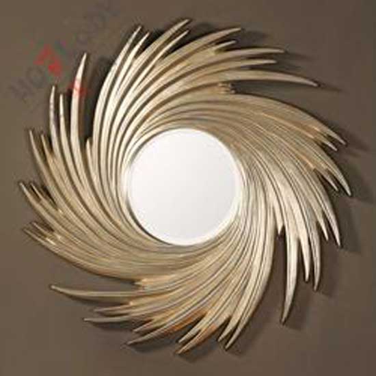 This contemporary wall mirror is designed with a tornado-shaped frame. The mirror frame is made of PU and resin in a silver finish. The tasteful wall mirror is a wonderful addition to your home decor.