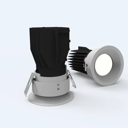 Ultra-Thin Profile Round Adjustable Regressed Trim, 2-1/2" high-efficiency dimmable LED downlight allowing up to 30° tilt adjustable from below ceiling. Offered in Remodel NON-IC (with optional mounting plate), new construction NON-IC and new construction IC configurations.