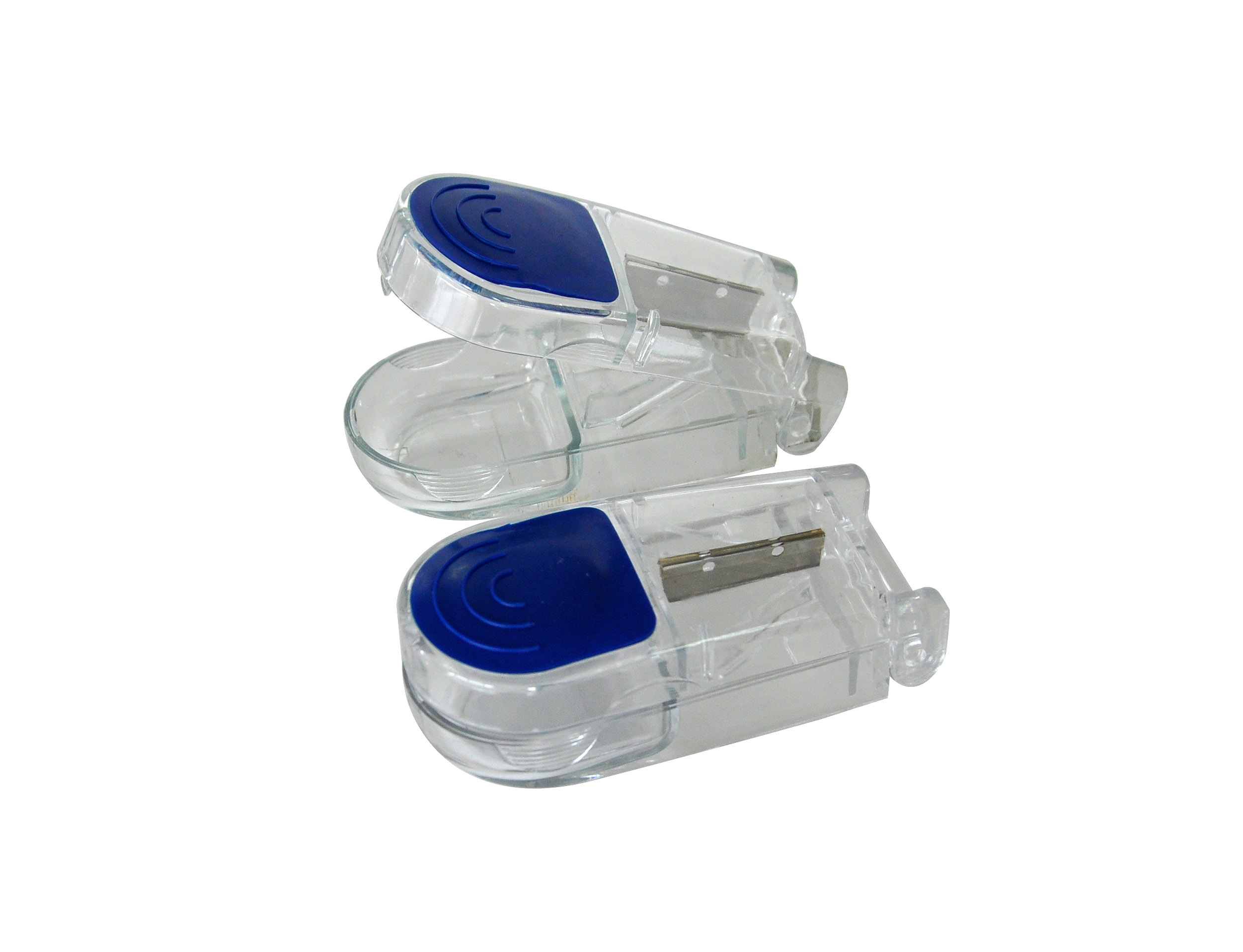 Small and compact device designed to help you cut pills or tablets into smaller pieces for easier swallowing. It is made of high-quality plastic material and features a sharp stainless steel blade that can easily cut through pills of various sizes and shapes. Its compact size and lightweight design make it easy to carry in your purse, pocket, or travel bag.