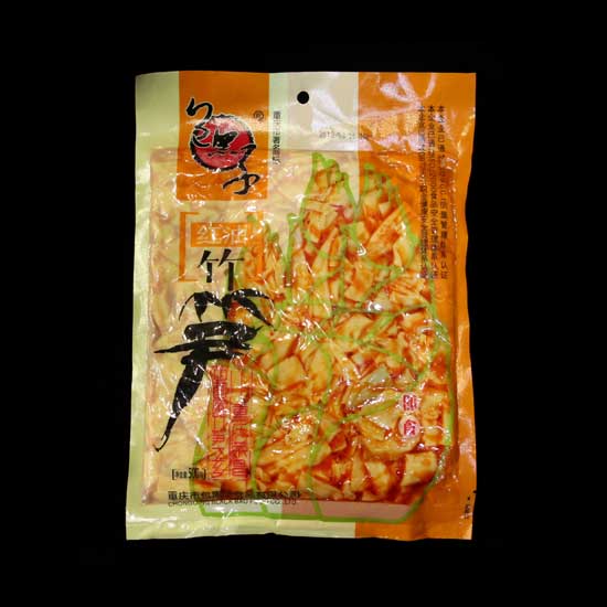 Showcased is a pack of cooked shredded bamboo shoot. It is produced with red pepper sauce for rich, exciting flavors. This delicious bamboo shoot is a great snack for travel and other occasions.