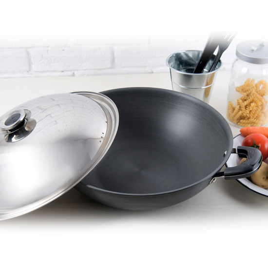 This is a cooking pot that comes with a large capacity. Featuring a concave body, this cooking pot allows even heat distribution. This high quality cooking pot has a matching lid for convenient usage.