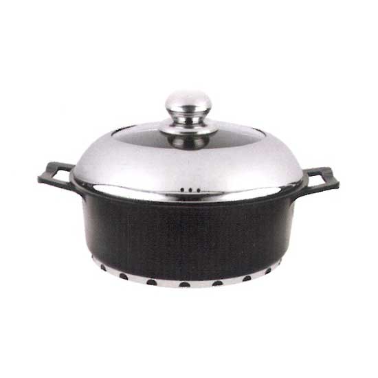 This cooking pot features two handles and a lid with a knob. It comes with a robust housing for a long service life. This cooking pot is a great choice for your household.