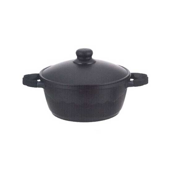 This is a high-quality cooking pot with a lid and two handles. It comes with a robust black housing for durability. This cooking pot is an ideal addition to your household.
