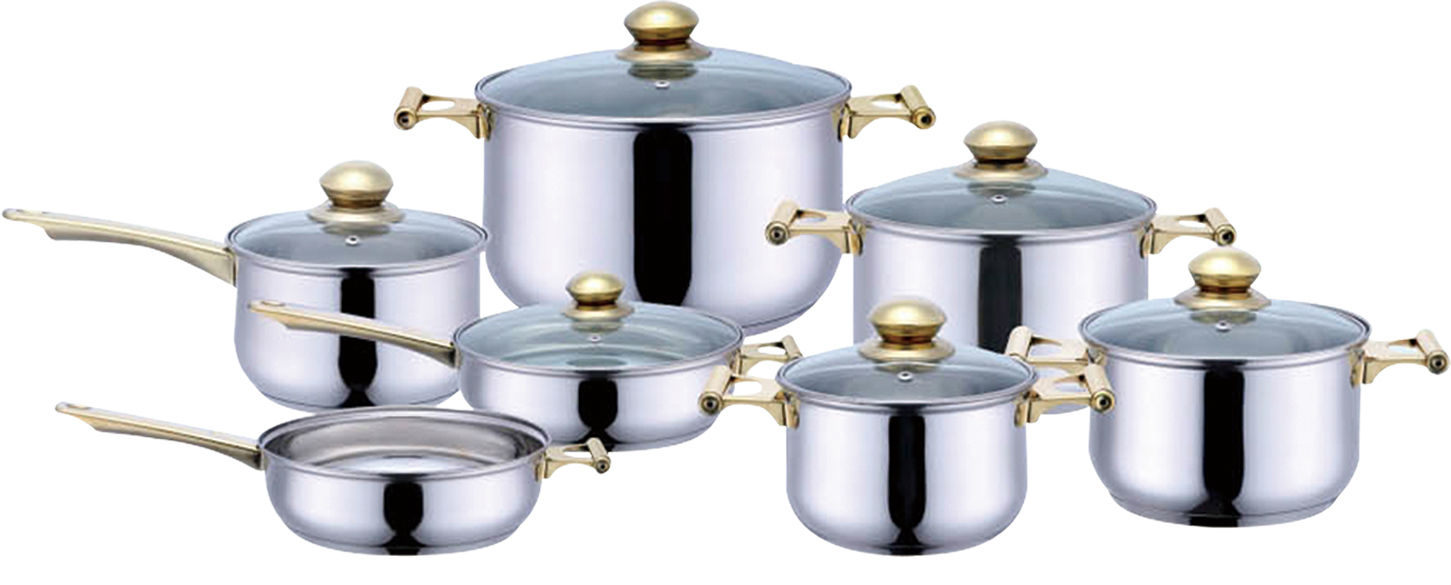 This is a set of professional pots for cooking lovers. The set includes saucepans and soup pots, while different sizes and depths are incorporated to suit various cooking needs. Every pot is covered with a see-through lid for viewing cooking process.
