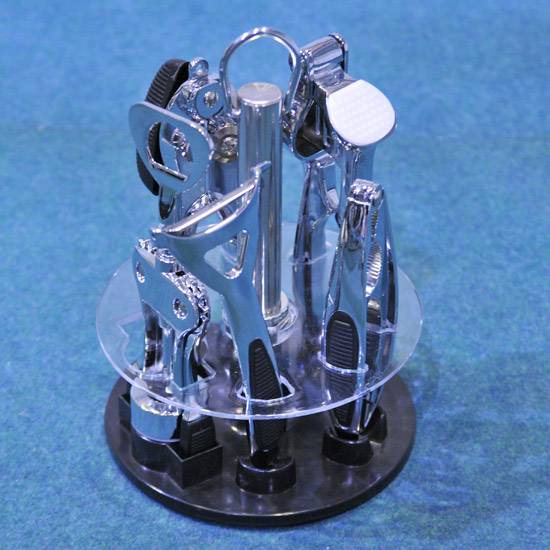 The featured cooking utensil set is made of stainless steel. The set includes bottle opener, can opener, grater and other kitchen cooking items.