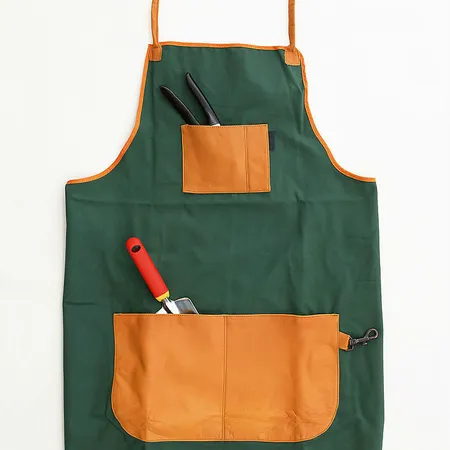 • Demonstrated is a classy bib apron in bright colored appearance.