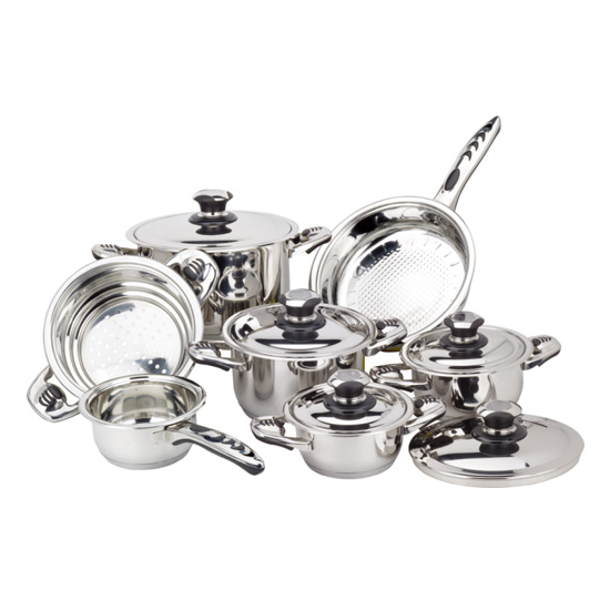 Upgrade your kitchen with a metal made stock pot set. The pot features heat-resistant handle and durable metal lid. Different sizes available.
