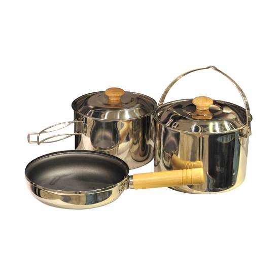 The featured item is a cookware set which is ideal for household use or outdoor activities like camping. The pots have a large capacity, is strong, and also reliable.