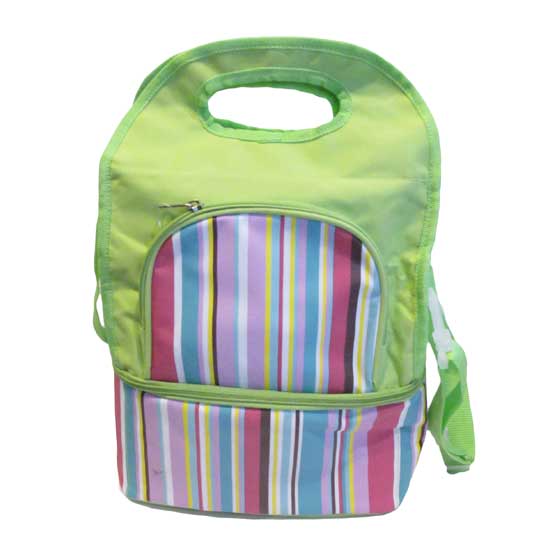 This green-colored cooler bag comes with rainbow patterns for an eye-catching look. This heavy-duty cooler bag is made of 100% polyester for high durability. This polyester cooler bag is ideal for camping or picnic use.