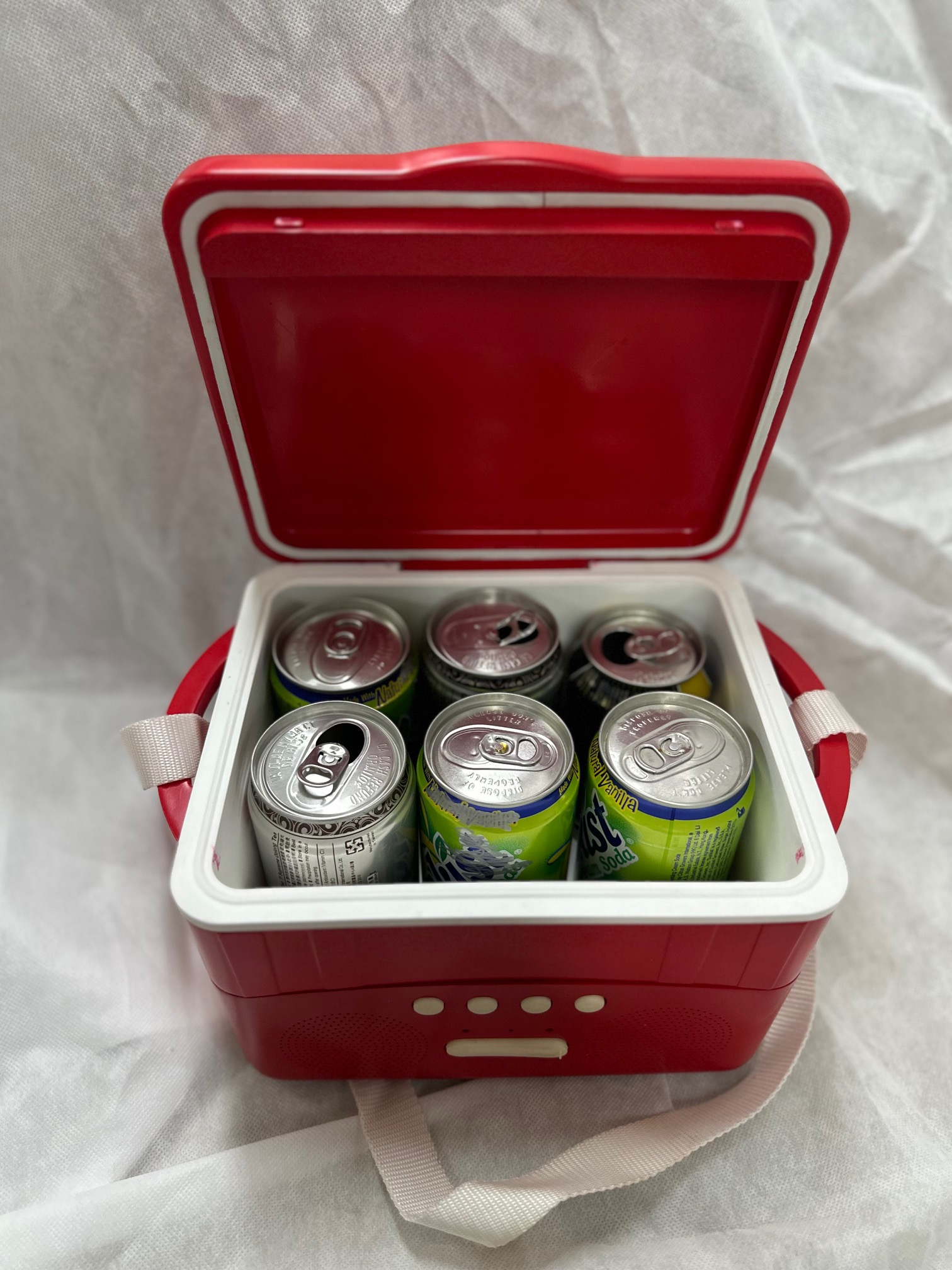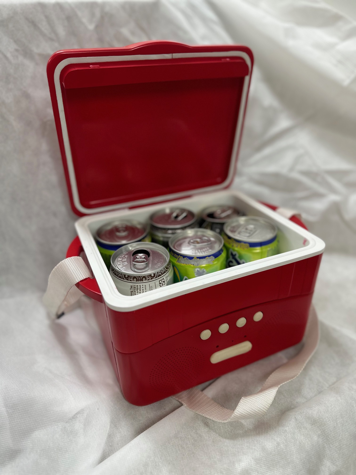 Keep your drink chilled at all times with this high-capacity cooler box. The plastic ice box carry 6 cans of drinks to serve each party guest with bottle of icy beer . Installed with a pair of high-grade speakers at the base , it can be connected to any Bluetooth -enabled device in a snap to turn up the picnic with your favorite music playlist.