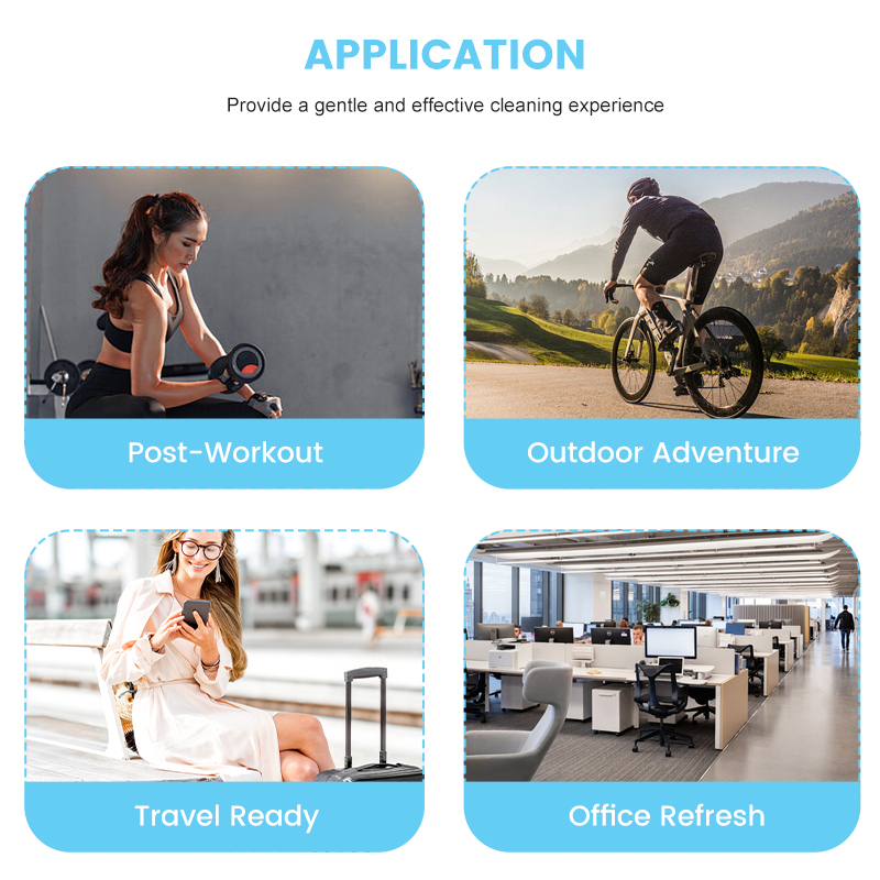 | Beat the heat instantly with our Refreshing Cooling Wipes. Designed to provide an immediate cooling sensation and wipe away sweat, these wipes are the perfect companion for outdoor activities, fitness, commuting, and hot summer days. |