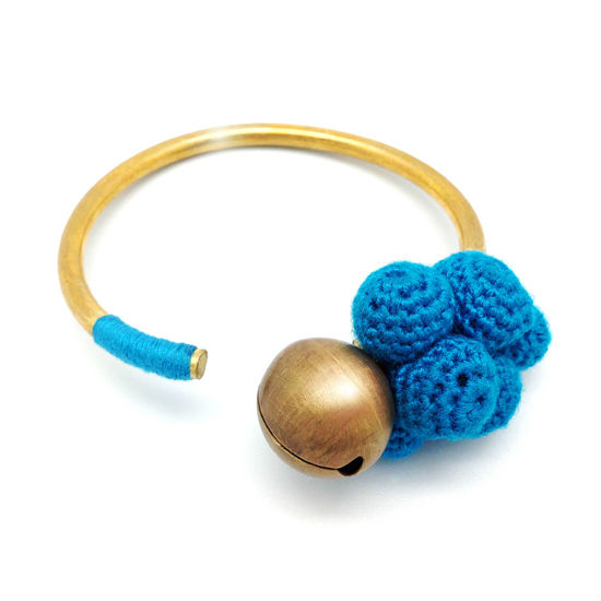 • Dainty bell bracelet in classy golden tone complemented by blue embroidered details.