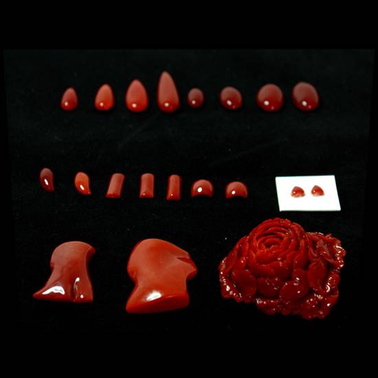 Bathed in intense red luster with subtleties in tones ranging from orange red to oxblood, these corals make the exotic centerpiece for your jewelry. The polished cabochons are available in different shapes, ideal for sculpturing into intricate motifs for lasting enjoyment.