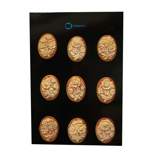 Highlighted is a series of coral cameos boasting an elegant design. The cameos come in an oval shape, featuring exquisite floral embossment in lustrous white. The natural luster of the coral makes these cameos a perfect decoration on jewelry.