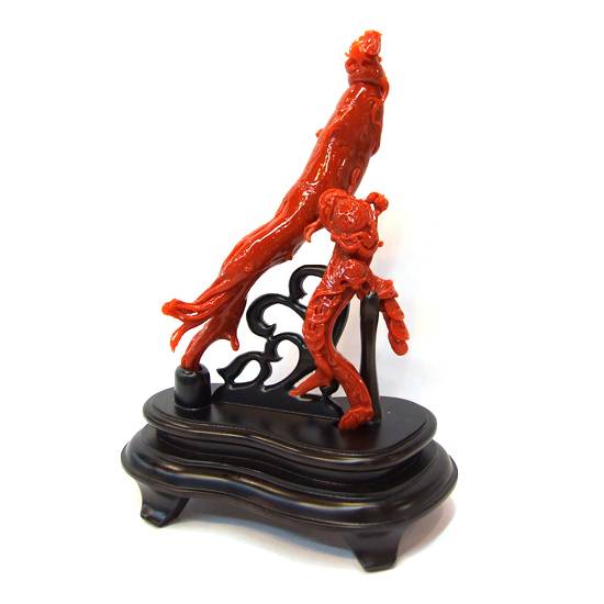 Shimmering brilliantly on this coral sculpture is its crimson glamor and creased surface texture. Supported by its exquisite craftsmanship, its triangular supporting stand on a raised pedestal are carefully arranged for a pleasing appearance to stand out among your home and office decorations