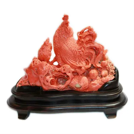 Displayed here is a delicate carving finely made of Momo coral. The unique peachy hues offer a noble touch of style. This Momo coral carving comes with small and intriguing details that add to its value.