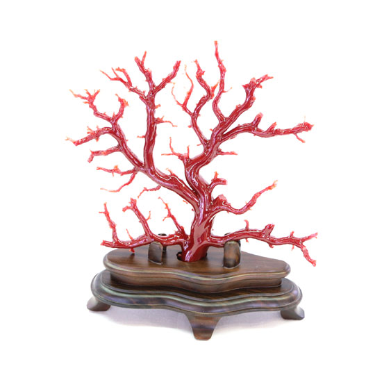This carving captures the ethereal elegance and endurance exuded by a tree standing amidst the winter snow. The coral carving exhibits excellent purity. Exquisite and detailed, this coral carving will delight every carving collector.