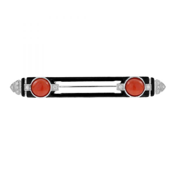 Coral Diamond Enamel Brooch (C0118)