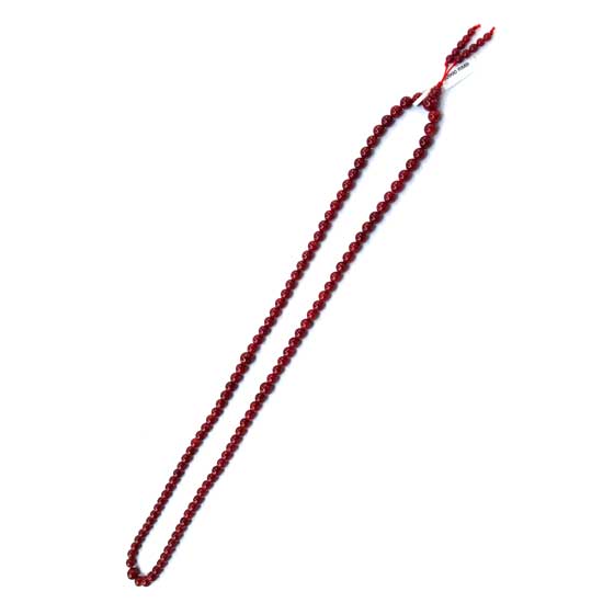 The coral necklace features red prayer beads linked up by thread, glistening with a red glassy shine. The coral beads are very lovely and are stabilized to hold the color well. The deep red color represents compassionate and passionate energy. The necklace is suitable for meditation and prayer practice.