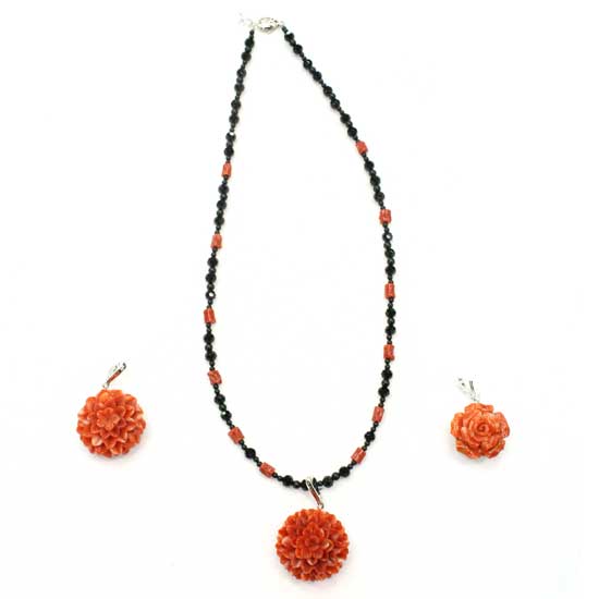 The ladies' necklace keeps you hooked at the first glance with the romantic floral shaped pendant crafted of a lustrous coral stone. The mysterious, black onyx beads complement the vibrant red coral beads for a harmonious look. Included with two additional floral pendants, this gorgeous necklace matches your style every single day.