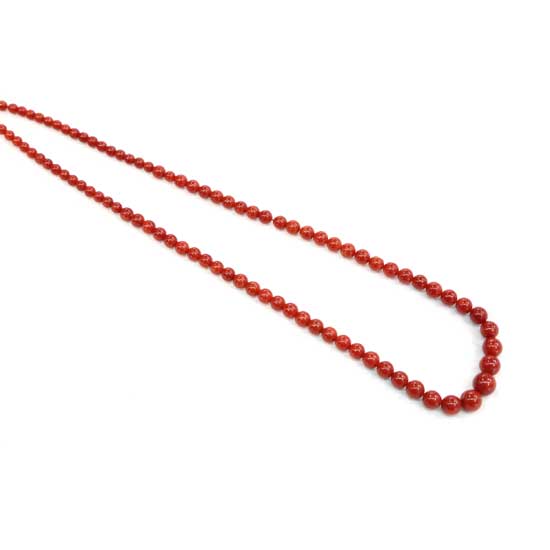 This is a coral necklace that comes in a long length. The small beads are polished for a refined look. This elegant necklace is ideal for daily wear and cocktail parties.