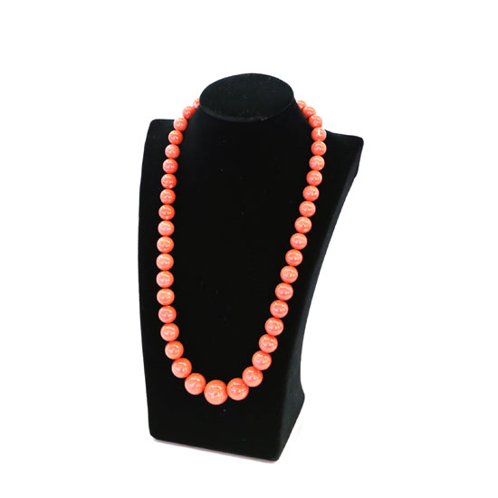 This coral necklace is crafted with meticulous attention to detail. Each of the coral beads exhibits a girlish pinkish hue and excellent purity. This beaded necklace will nicely adorn your neck and chest.