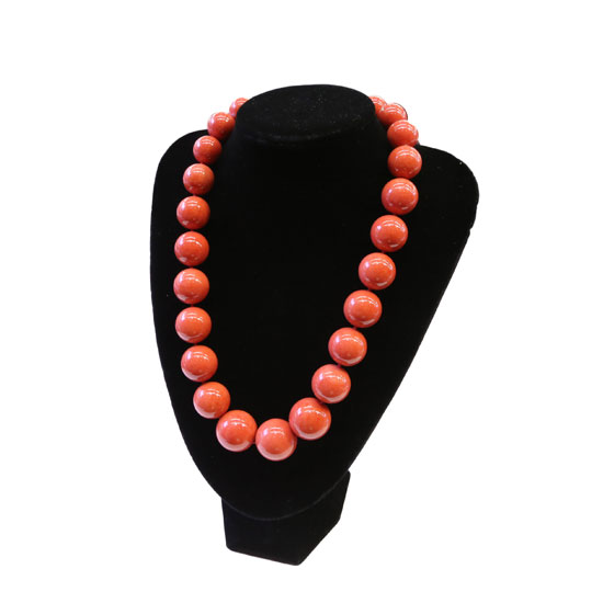 This coral necklace comes with a stylish and elegant design. Each coral bead is finely crafted with a high-gloss finish. This coral necklace is great for complementing your chic look.