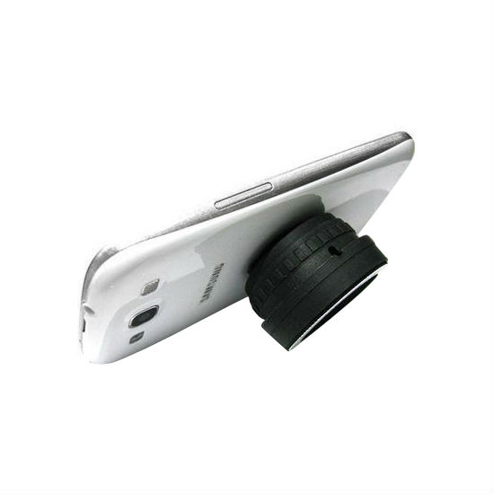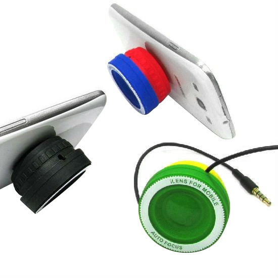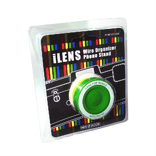 Description: lens shaped wire organizer and phone stand. It can be stucked on any other mobiles with shiny surface as phone stand and wire organizer. It helps to organize / shorten the earphone wire and work as a phone stand.